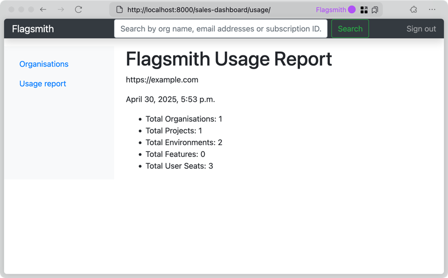 1. Browse to /sales-dashboard/ relative to your Flagsmith API.